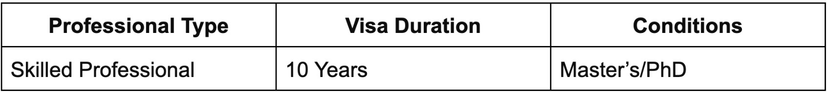 To be eligible for the 10-year visa, professionals must meet the following criteria: