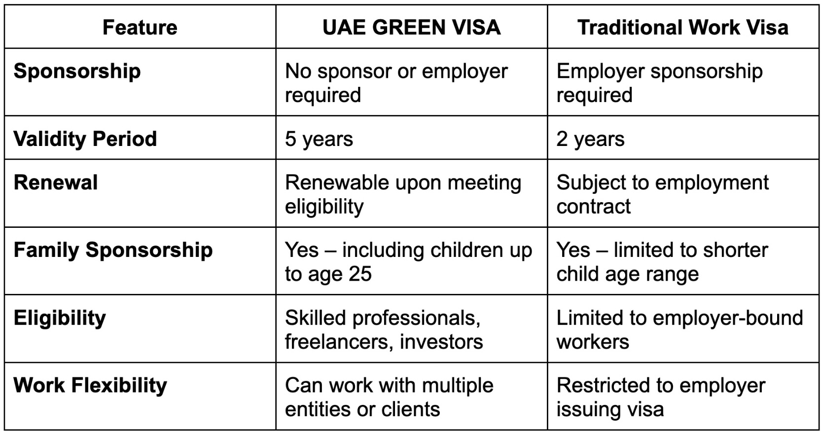 Unlike the standard UAE work visa, which ties you to a single employer, the Green Visa puts you in control. You don’t need a local sponsor or company to back you; you have the independence to choose how, where, and with whom you work. For many, that means no more worrying about job restrictions or sudden contract changes. It means real stability, with the chance to focus on growth, both personally and professionally.