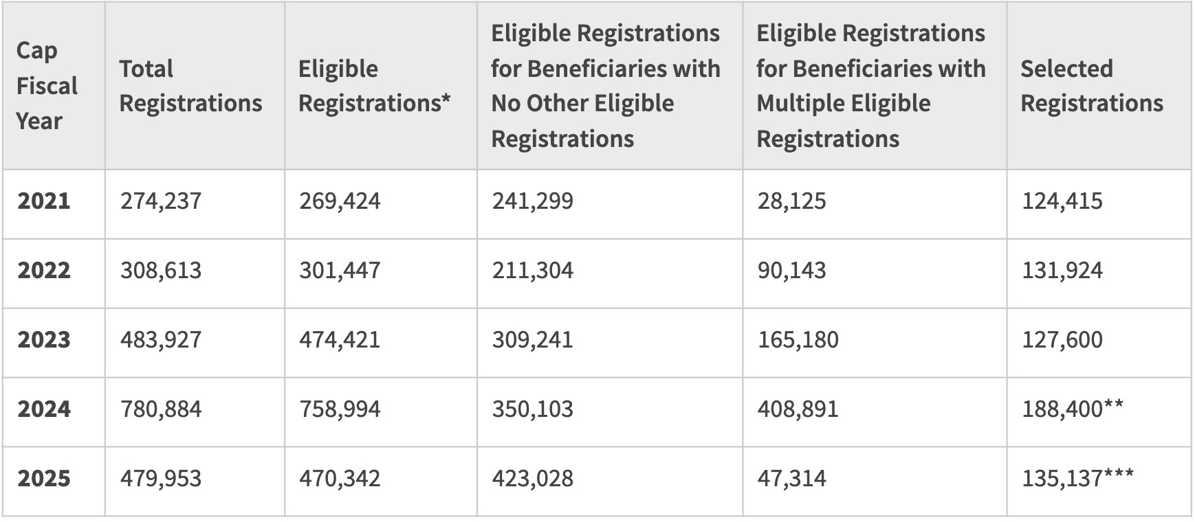 Several factors influence the odds of selection in the H-1B lottery. These include: